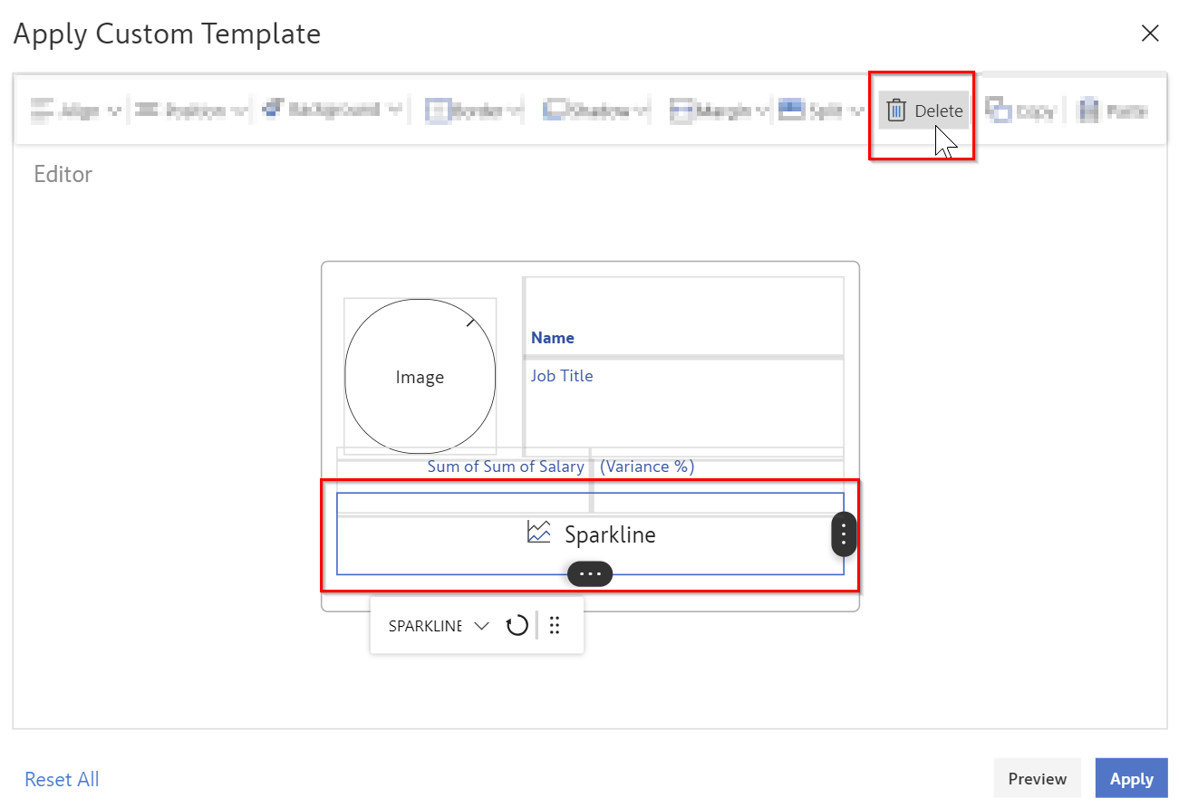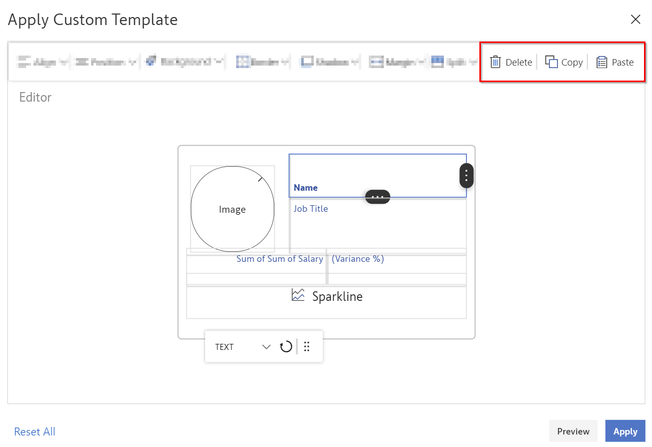 We can modify the template using the “Delete” and “Copy & Paste” options.
