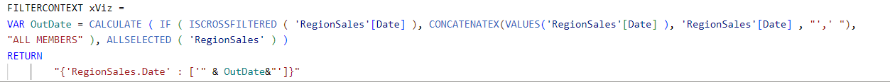 7. We get a DAX query that will return the value/(s) selected in the report slicers.