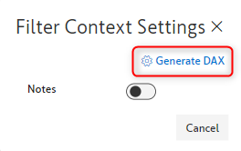 <figure><img src="https://382510089-files.gitbook.io/~/files/v0/b/gitbook-x-prod.appspot.com/o/spaces%2FIuuIZWiXEx25eV75hmmJ%2Fuploads%2FeMUbkejKYyypva6kJO95%2F4.png?alt=media" alt="" width="379"><figcaption><p>Image 6: Click on Generate DAX</p></figcaption></figure>