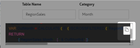 8. When a DAX measure is created, a copy button appears. Click it to copy the DAX measure.