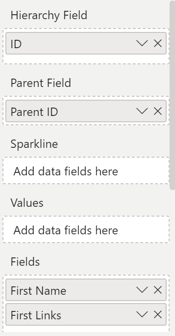 5. Populate the **ID**, **Parent ID**, **Name**, and **Links** columns in the data fields.&#x20;