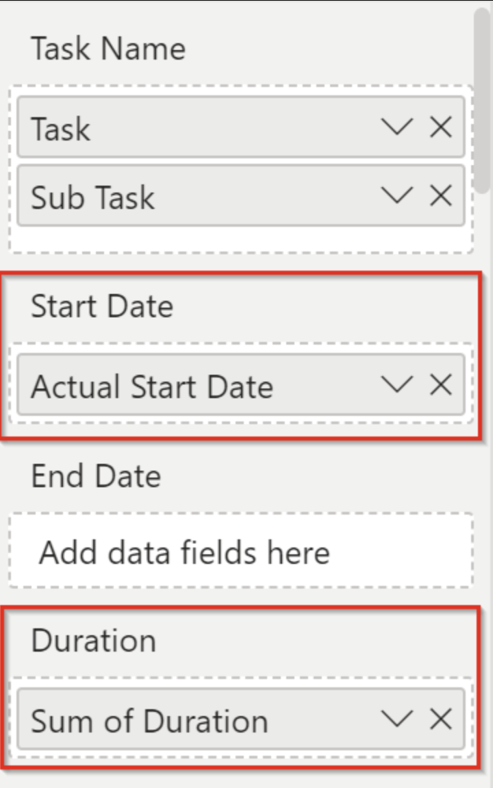 Now, populate the Actual Start Date and Duration columns into the Start Date and Duration fields, respectively.