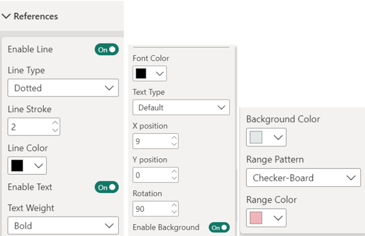 We can also display the Reference line and Reference Range using the Data Fields of Reference Start Date and Reference End Date.