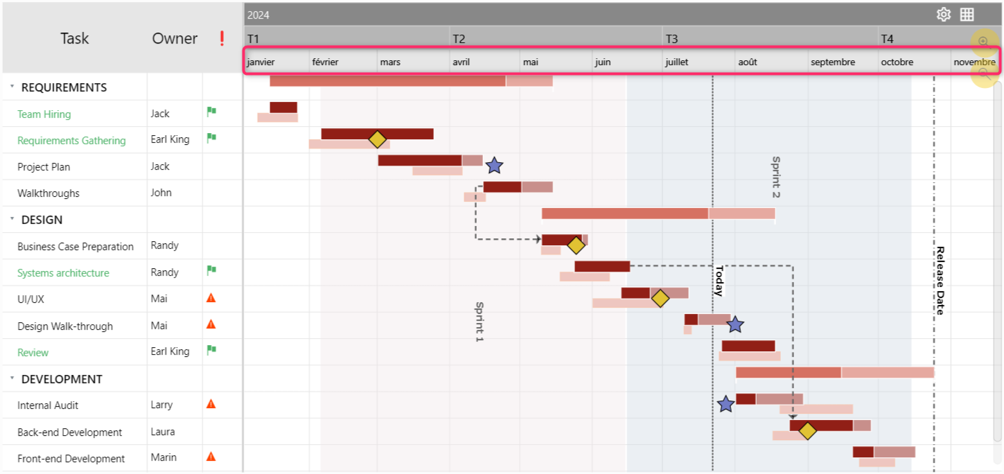 Now, refresh the xViz Gantt chart file. After refreshing, we can observe that the timeline's month labels will be displayed in French.